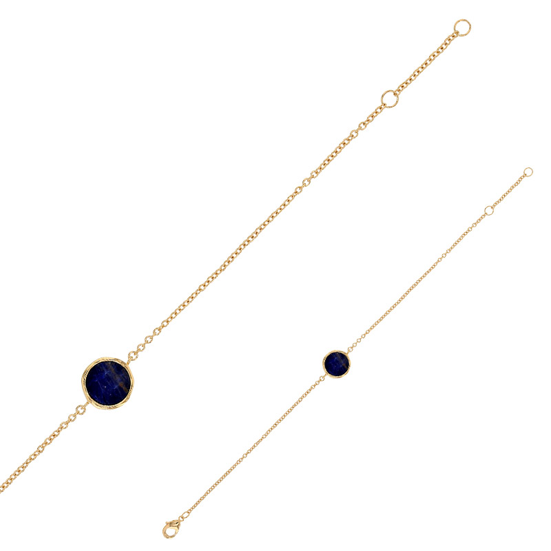 This gold plated bracelet is set with a genuine sodalite stone, known for its deep blue tones and subtle natural veining. The round stone is framed in a minimalist gold setting and placed on a fine, delicate chain, creating an elegant and timeless silhouette. Sodalite is often associated with clarity and inner harmony, making this bracelet a refined piece that blends natural beauty with understated luxury.